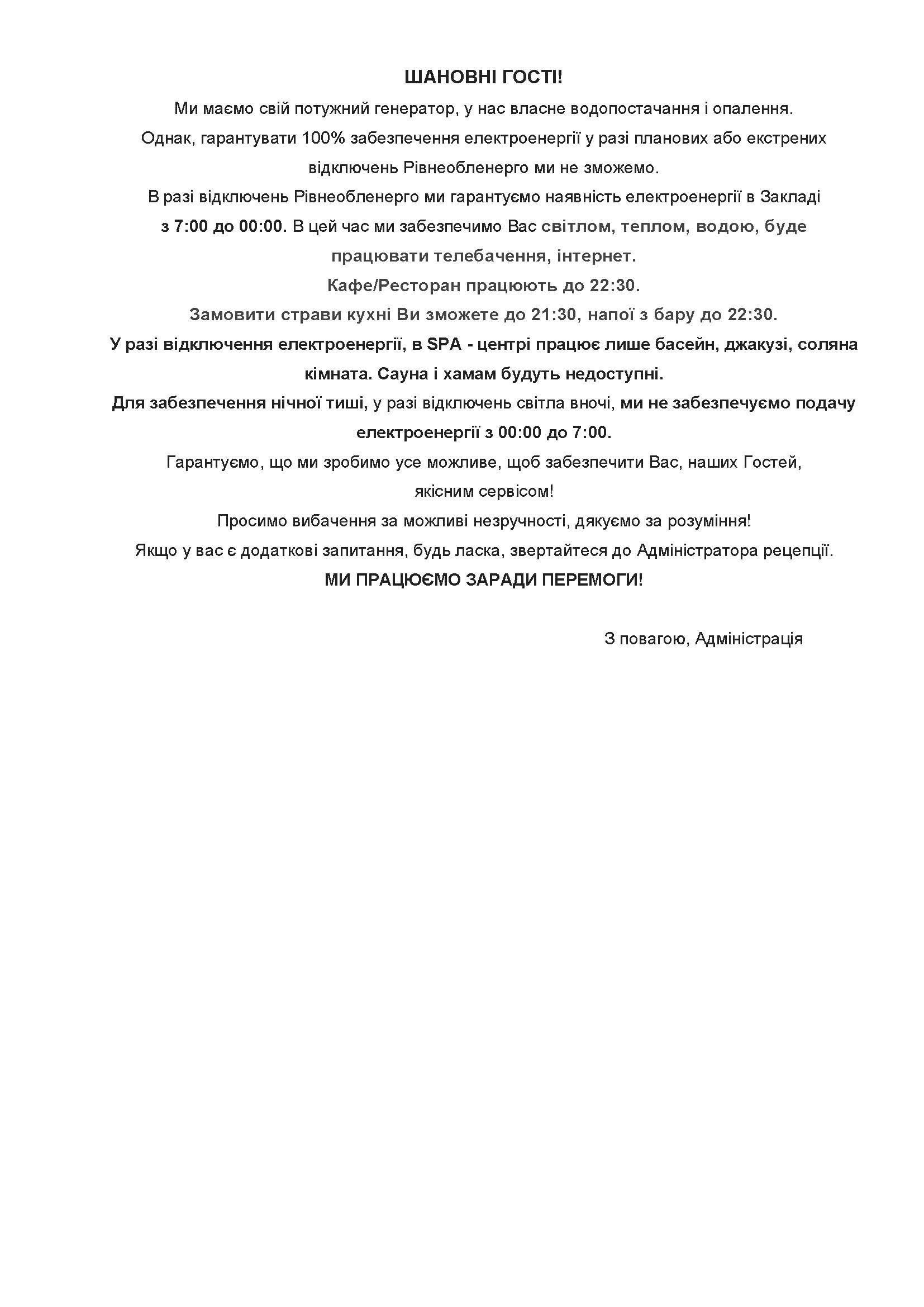 ГОТЕЛЬ ● SPA ● БАСЕЙН ● РЕСТОРАН ● КАРАОКЕ ● БАНІ ● ЧАНИ